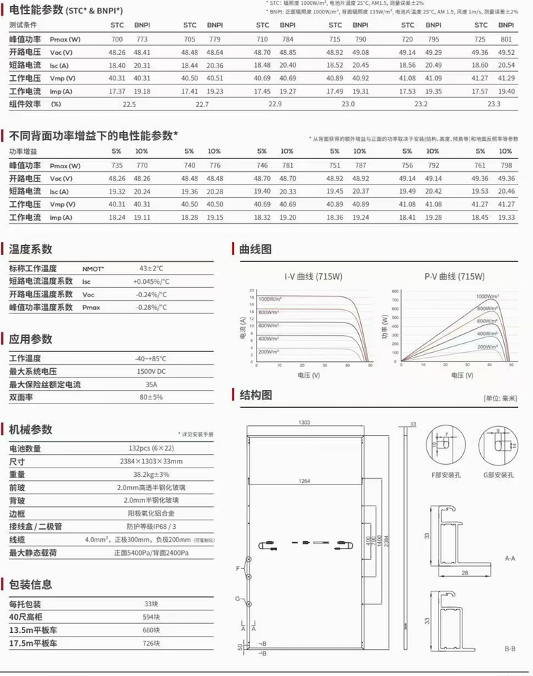 Panneaux solaires N-Type bifaciaux photovoltaïques 705W 710W 715W 720W 725W 730W à forte demande