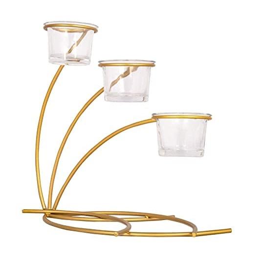 Bonne vente belle barre de mariage en verre classique métal creux extérieur bougeoir en verre décoration support métal