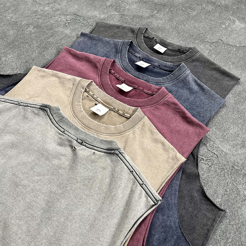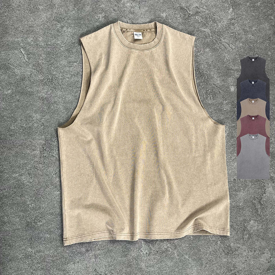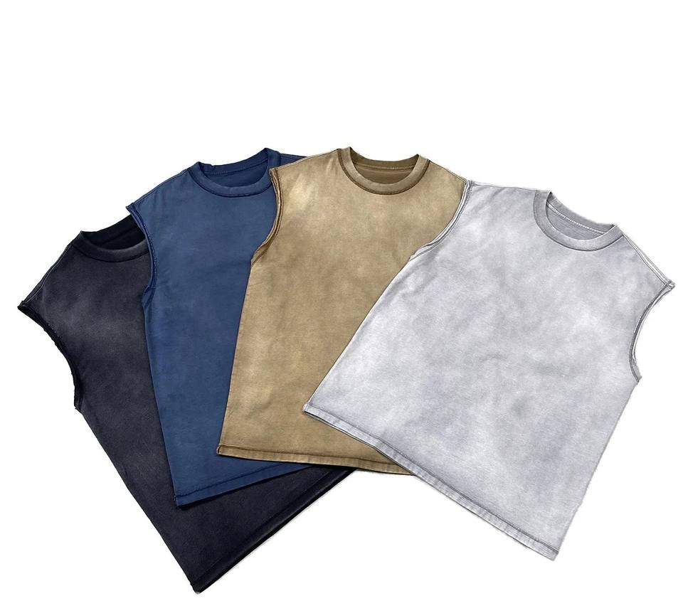Débardeur en coton tricoté pour homme, respirant, à séchage rapide, lourd, surdimensionné, délavé à l'acide, côtelé, streetwear 3D, col rond