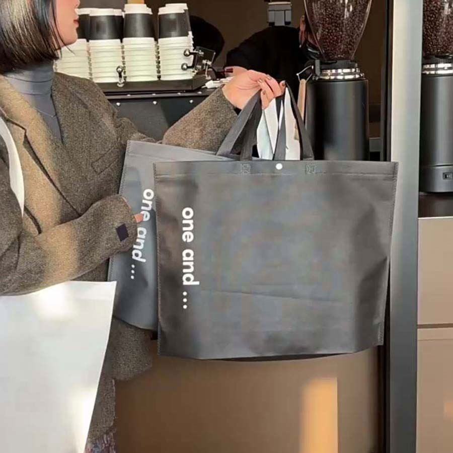 Bonne vente sac à provisions de rangement pliant non tissé avec logo imprimé personnalisé recyclable et réutilisable avec bouton