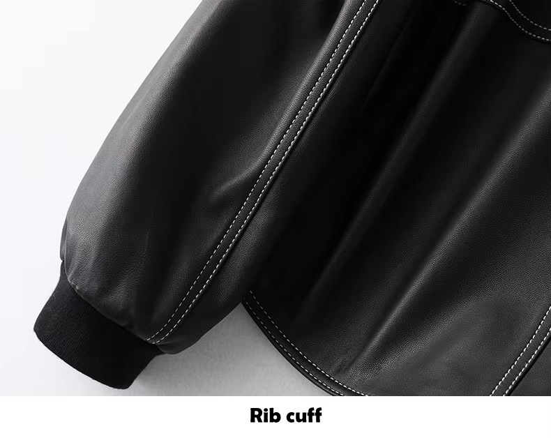Veste courte en cuir pour femme, style streetwear, en cuir, neuve, avec manches en cuir
