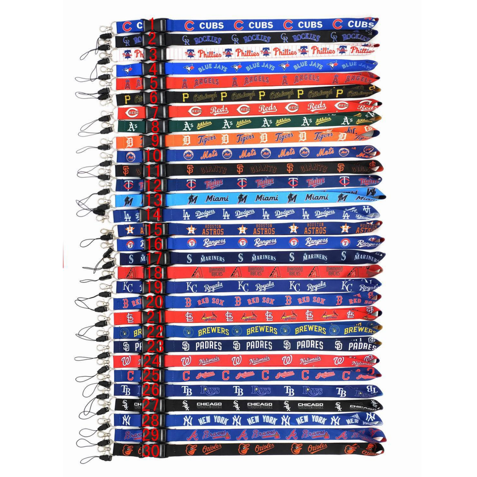 Longe longue dégradée de transfert thermique de club de baseball Us en gros de passe de travail mobile porte-clés lanière en métal bon stock