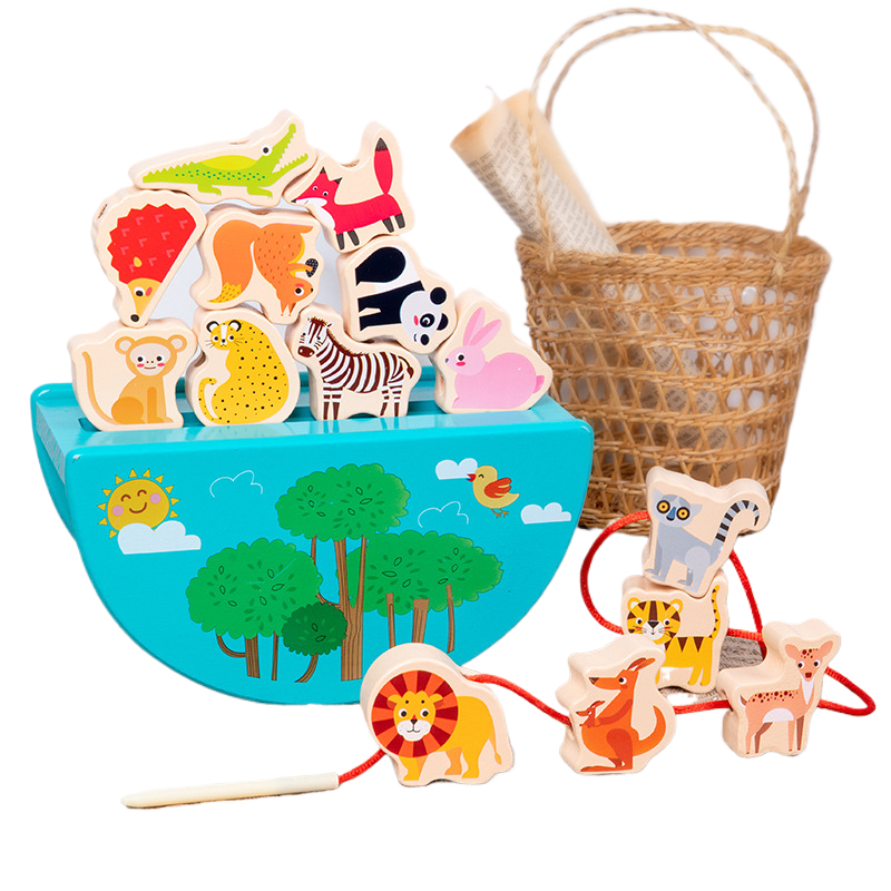 Bonne qualité Qiyi nouveaux enfants Animal corde perlée équilibre blocs de construction musique maternelle éducation précoce bébé jouets en bois