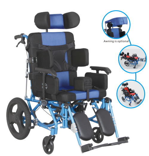 Fauteuil roulant pour paralysie cérébrale adulte et enfant bleu clair réglable de bonne qualité