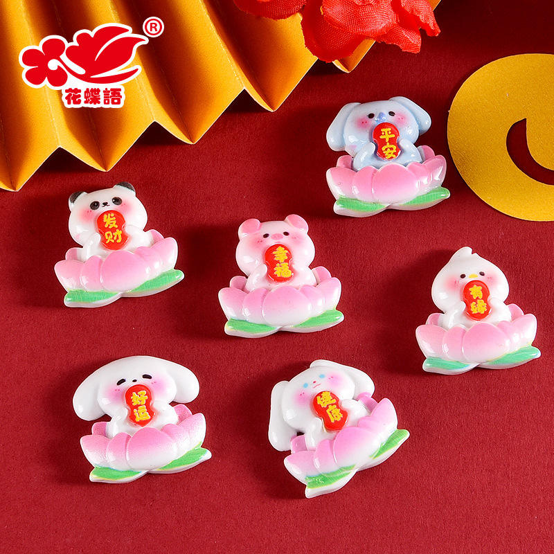 Bonne qualité chenjun nouvel an bonheur Lotus petit Animal série fait à la main bricolage matériel étui de téléphone portable réfrigérateur autocollant tête Rop