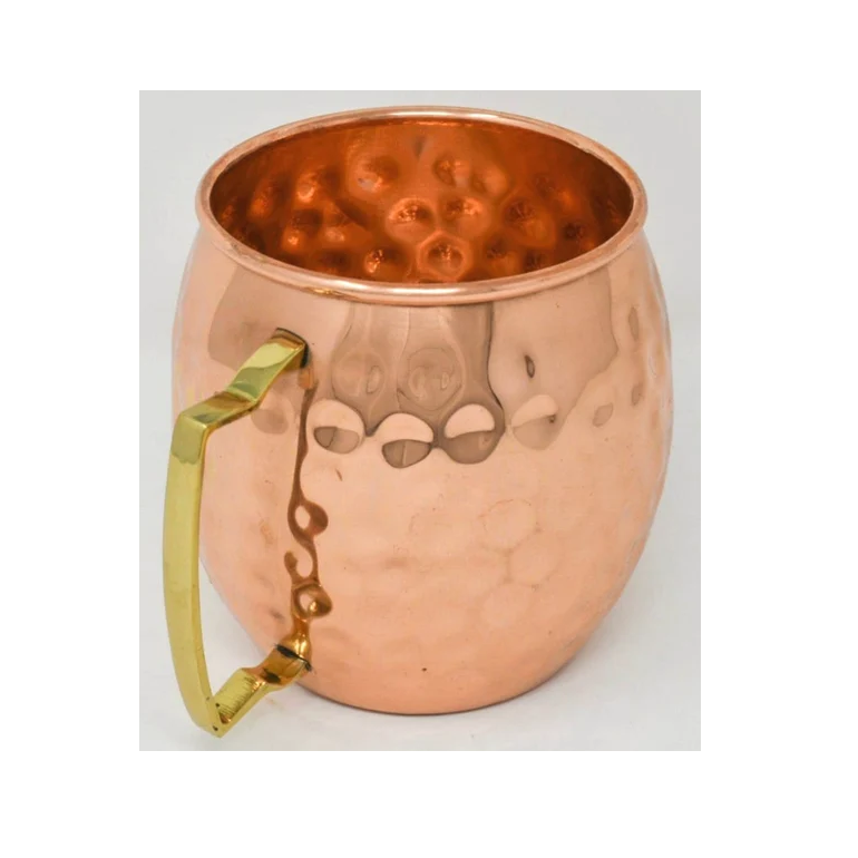 Tasse en cuivre de mule de Moscou de point de marteau de bonne qualité avec la poignée d'or 14oz grossiste de tasses de mule de Moscou de l'Inde