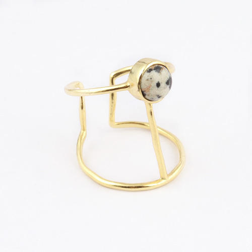 Bague de jaspe dalmatien plaqué or, anneau géométrique réglable en pierres précieuses, de forme ronde, naturelle, nouvelle collection