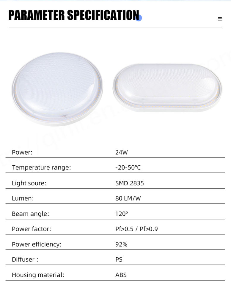 Lampe étanche à l'humidité Led 24W de bonne vente, lampe murale ovale extérieure ABS étanche IP65 pour installation en surface