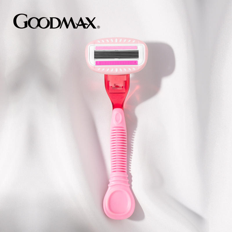 Rasoir manuel pour femmes Goodmax à cinq lames pour l'épilation des poils pubiens et des aisselles, lavable à l'eau, rouge