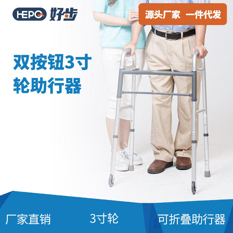 Déambulateur à roulettes Goodstep de 3 pouces, pliable, léger, durable, pour la rééducation et l'entraînement, pour personnes âgées