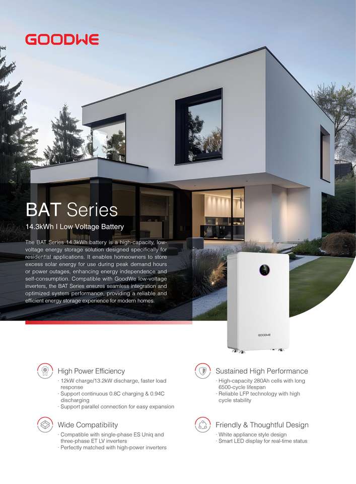 Batterie lithium-ion Goodwe BAT Series GW14.3-BAT-LV-G10, système divisé, LiFePO4, 14,3 kWh, 51,2 V, 280 Ah, avec communication CAN