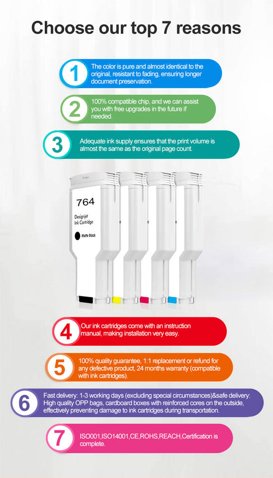 Nom du produit:Recharge de cartouche d'encre avec puce pour HP 764