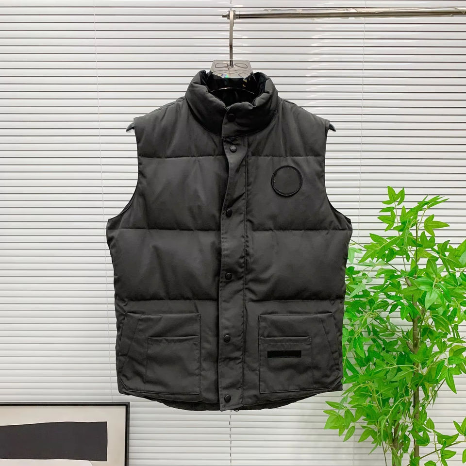 Gilet matelassé sans manches en duvet d'oie gris foncé à boutons et multi-poches : Vêtement d'extérieur décontracté chaud pour l'hiver