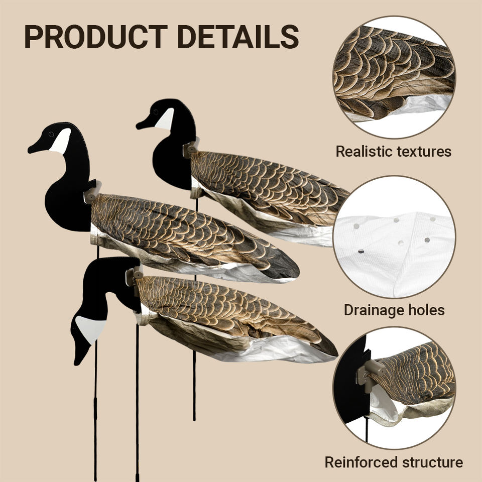 Décoys de chasse réalistes en forme de chaussettes d'oie avec piquets de sol stables, corps mats anti-reflets et installation rapide