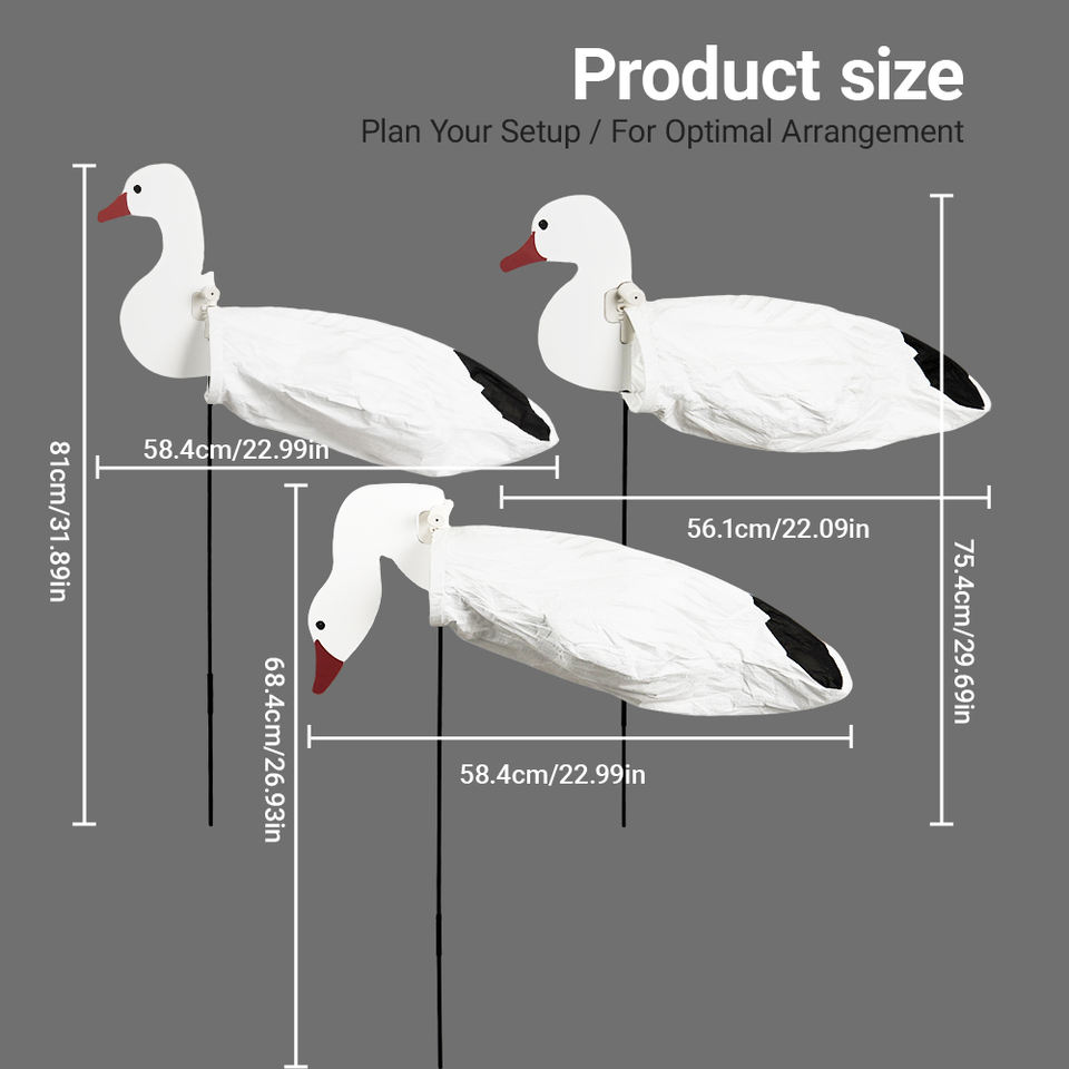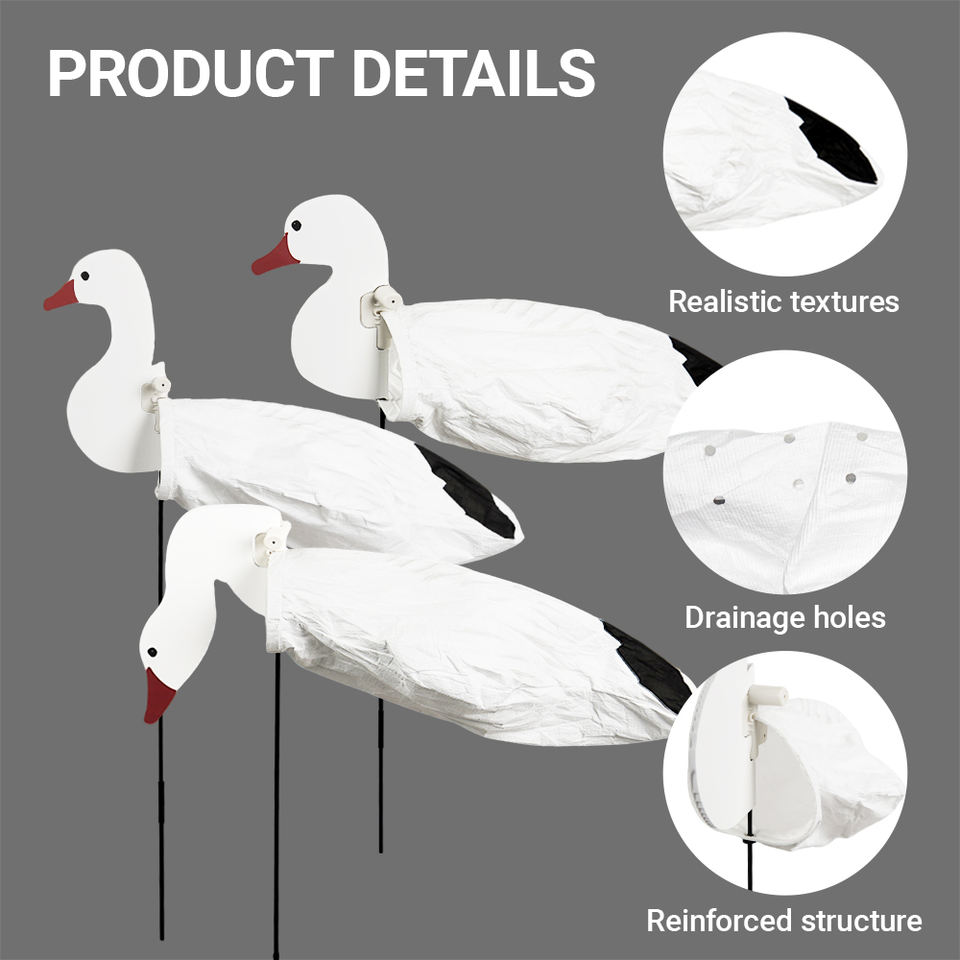 Décoys de chasse réalistes en forme de chaussettes d'oie avec piquets de sol stables, corps mats anti-reflets et 12 pièces en stock