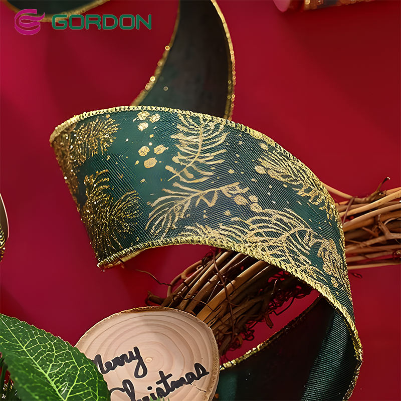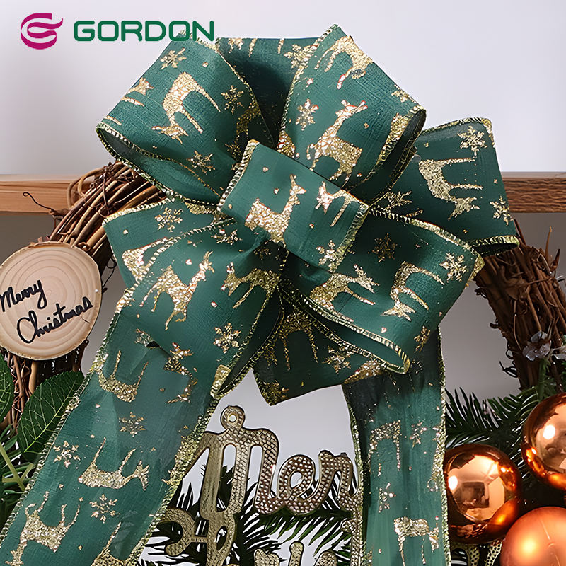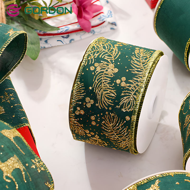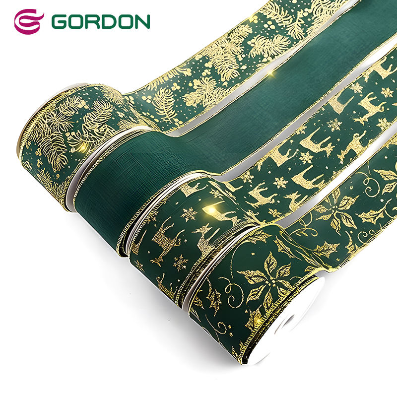 Ruban de Noël Gordon 4 po de large ruban filaire de Noël vert sans couture ruban satiné en toile de jute pour la décoration de l'arbre de Noël