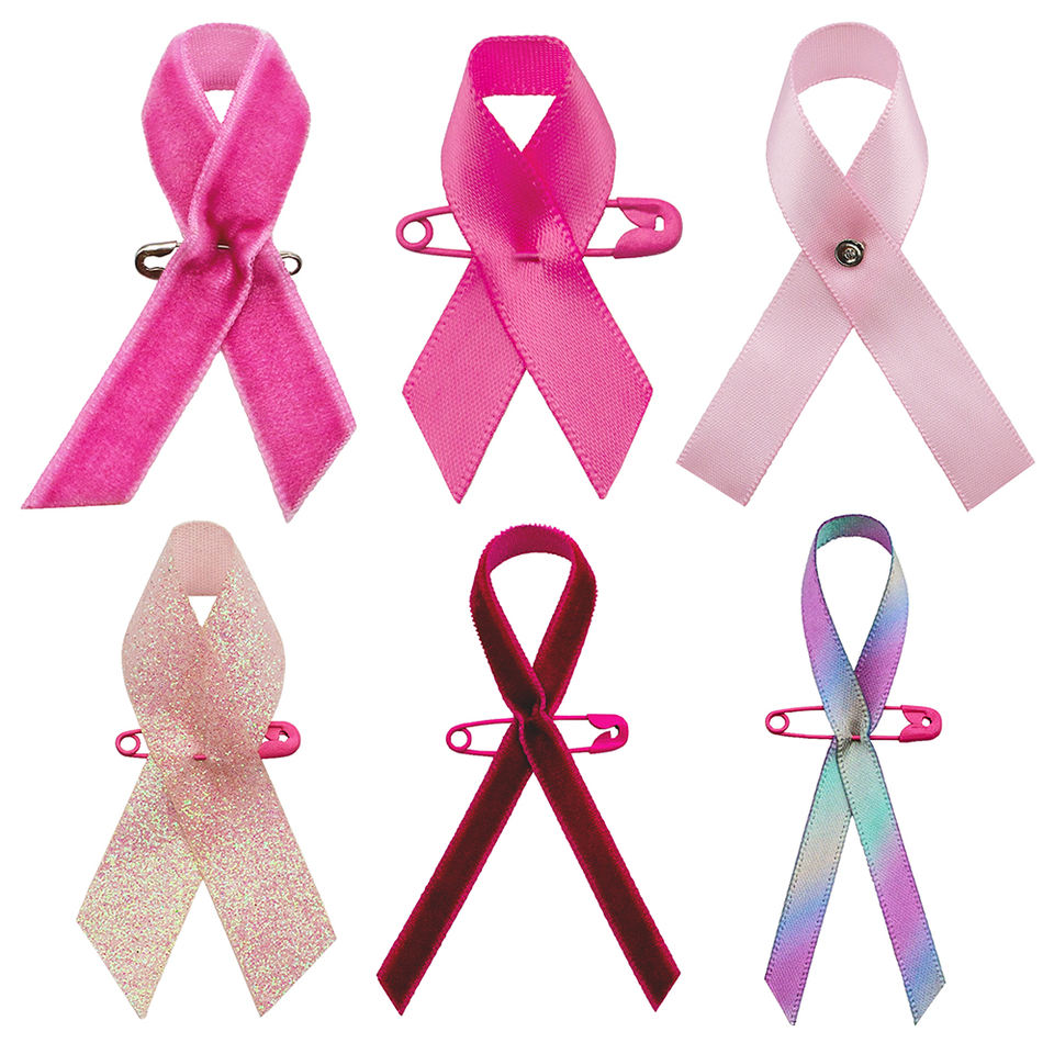 Ruban en satin Gordon Noeud de ruban de sensibilisation avec épingle de sécurité Vente en gros de ruban en satin uni de couleur rose Noeud de sensibilisation avec clip