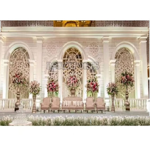 Magnifique ensemble de scène de mariage asiatique Angleterre réception de mariage musulman scène de nuit Maurice élégant scène de mariage sculptée en fibre