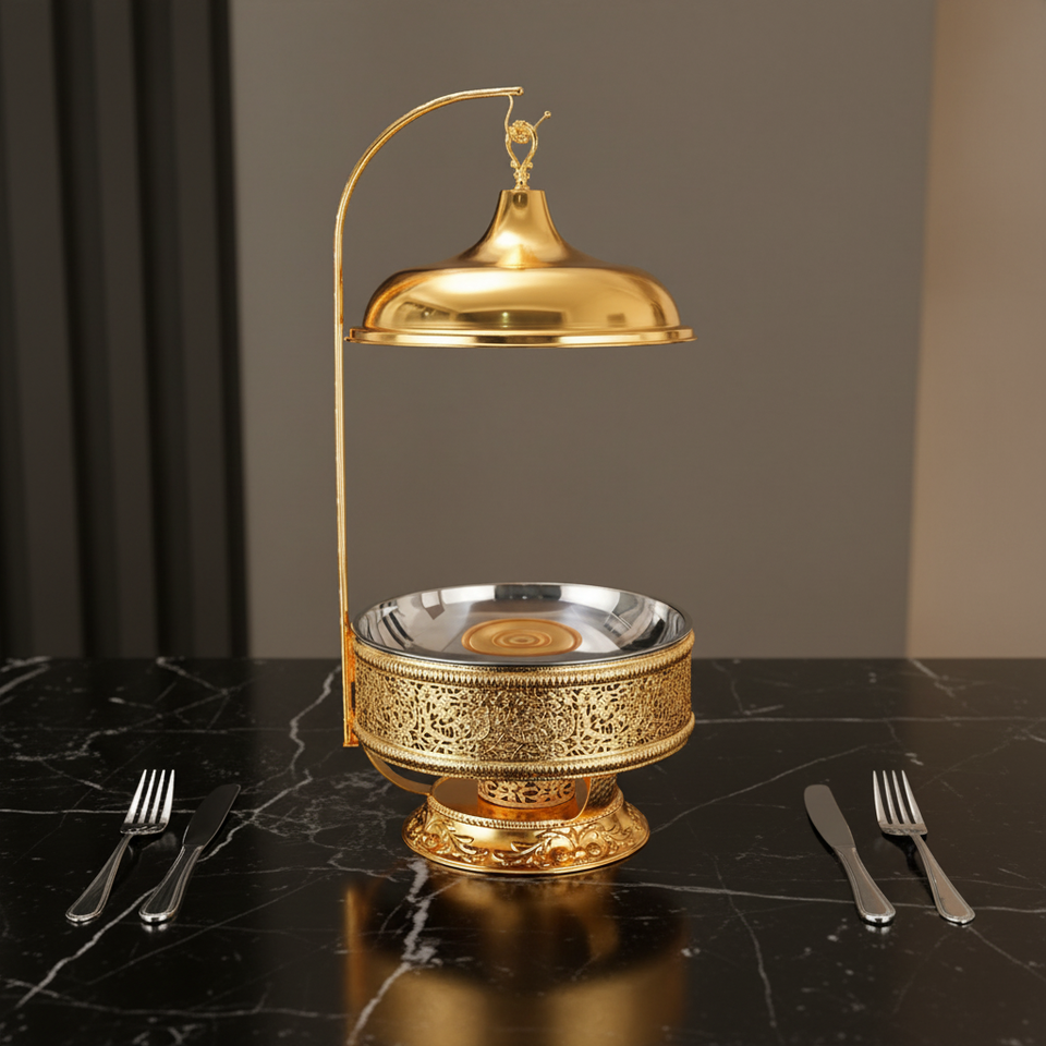 Magnifique chauffe-plat en acier inoxydable doré de 8 litres pour banquets, mariages et réceptions – Ensemble élégant pour garder les aliments au chaud
