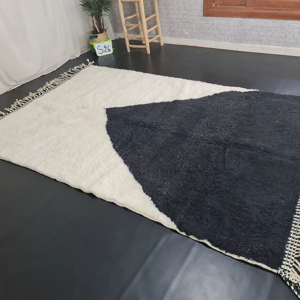 Magnifique tapis Beni Ourain tapis marocain fait à la main tapis personnalisé laine Teppish Marokko blanc noir berbère Design abstrait pour l'espace de la chambre