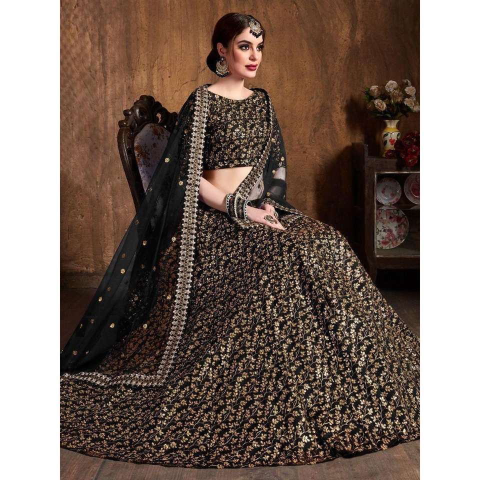 Magnifique Paillettes Noires En Soie Brute Réception Porter Lehenga Choli
