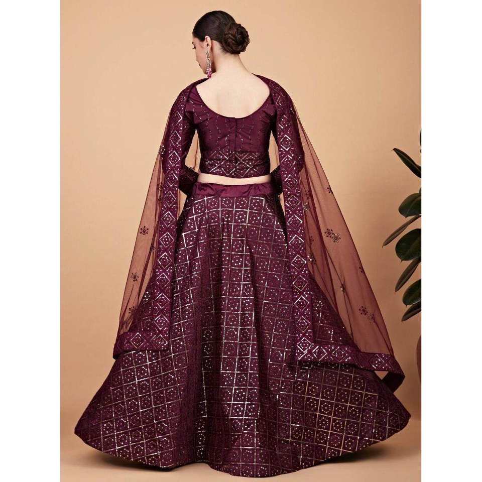 Magnifique tenue de mariage de créateur, Lehenga Choli en soie brodée de vin