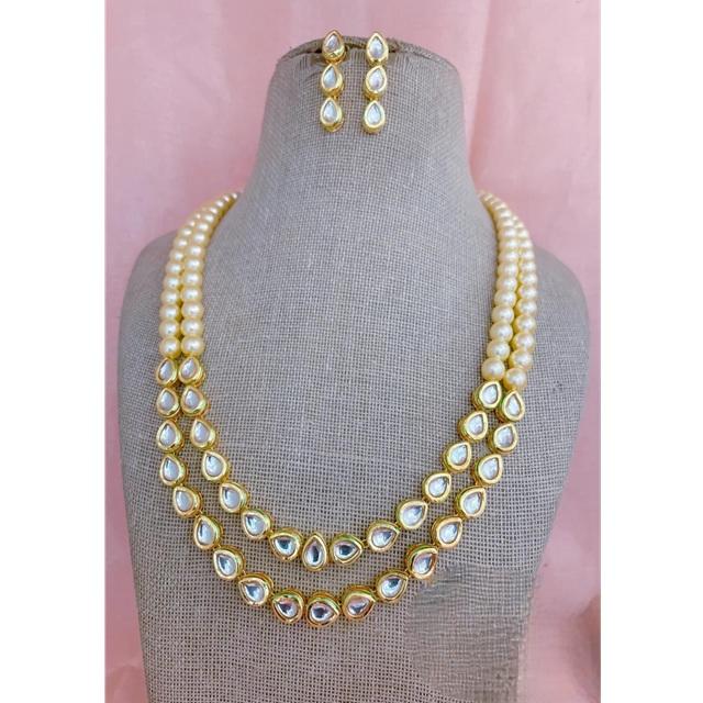 Magnifique collier Kundan double couche de qualité supérieure avec boucles d'oreilles pour femmes bijoux de créateur pour vêtements de mariage