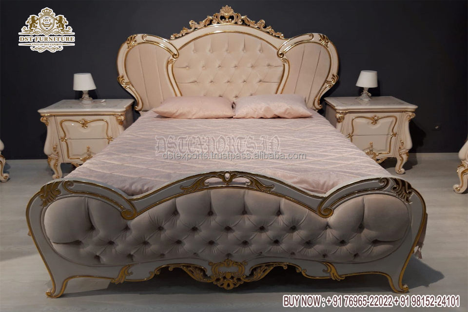 Superbe lit fait à la main avec finition blanche pour la maison, Design élégant, lit King en bois massif avec tables de nuit, aspect moderne, lits sculptés à la main