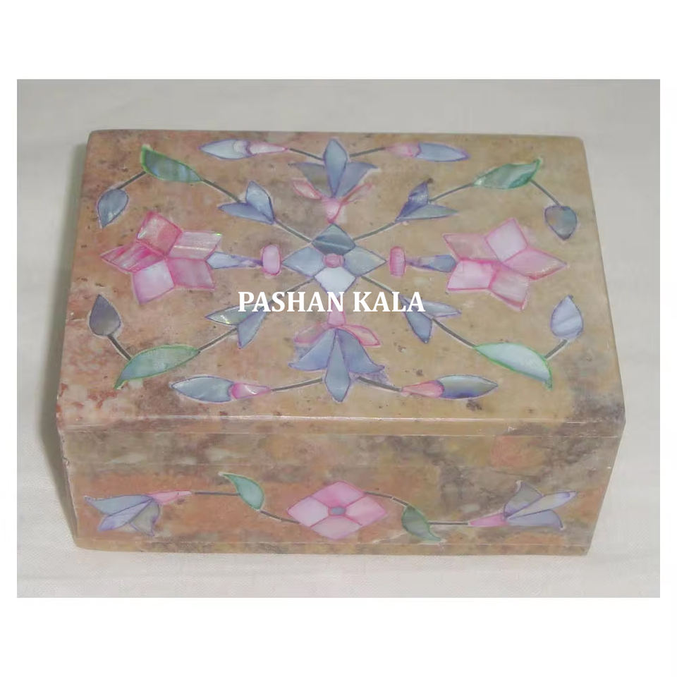 Magnifiques boîtes de rangement pour bijoux en pierre de savon rectangulaires faites à la main, avec incrustations de nacre, produit naturel