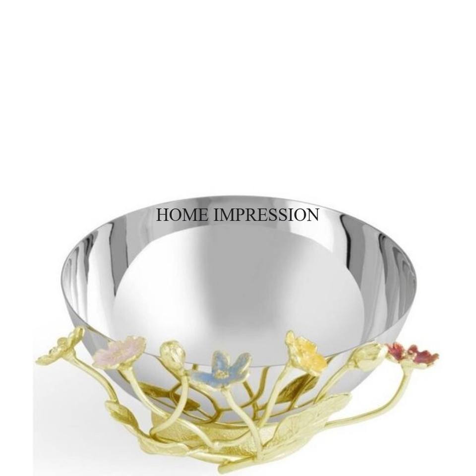 Gorgeous Look Most Beautiful Attractive Designer Gold Plated Unique Color Flowers Designer Base With Round Shape Silver Bowl