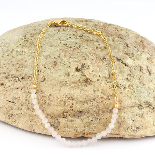 Magnifique bracelet minimaliste rond en calcédoine blanche avec chaîne à maillons plaquée or, bracelet à perles pour soirée avec fermoir à homard
