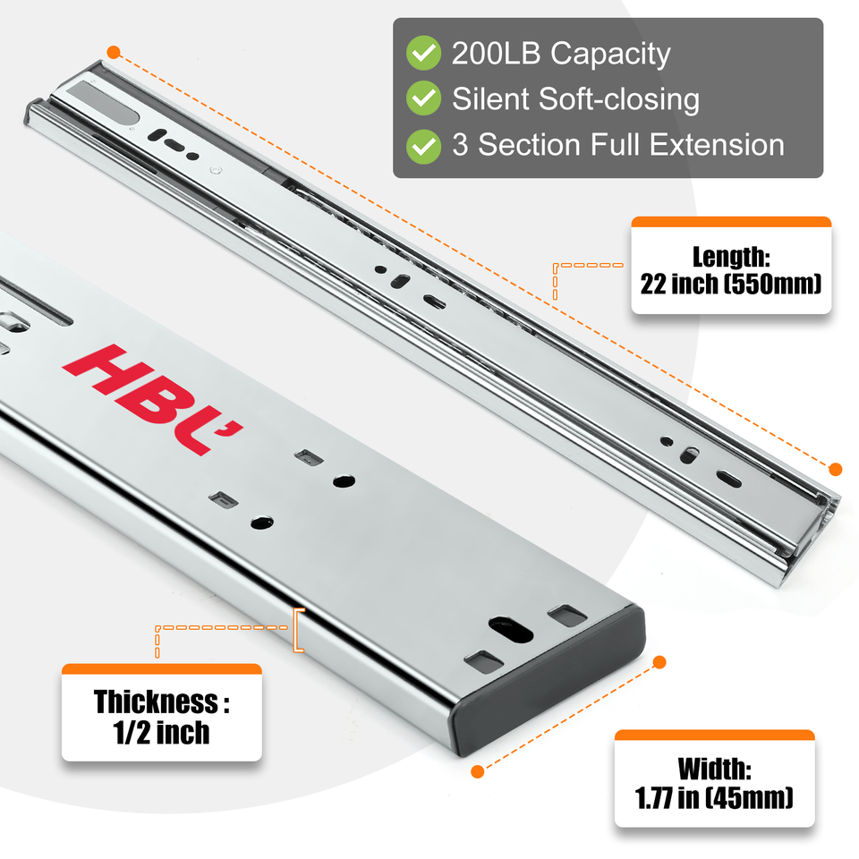 Installation facile, Heavy Duty, Silencieux, Extension complète, 3 fois, Fermer doux