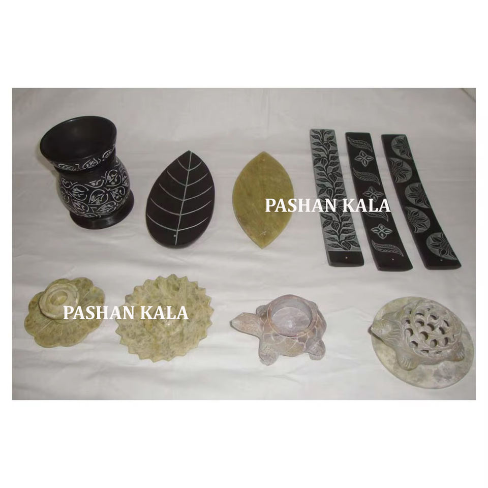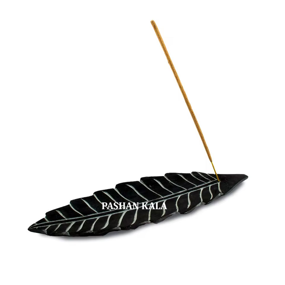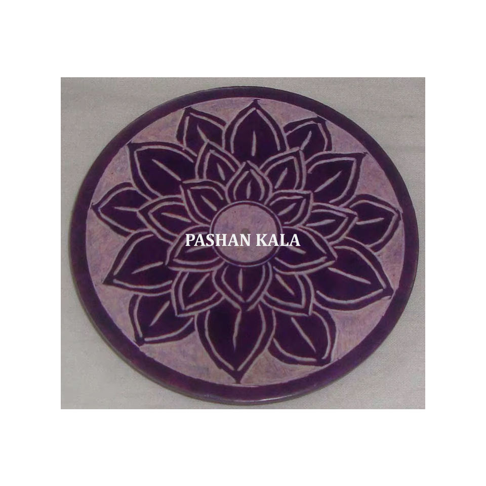 Magnifique porte-encens en pierre savonneuse polie, forme ronde, avec motifs de feuilles brillantes, surface lisse et brillante, pour objet de culte.