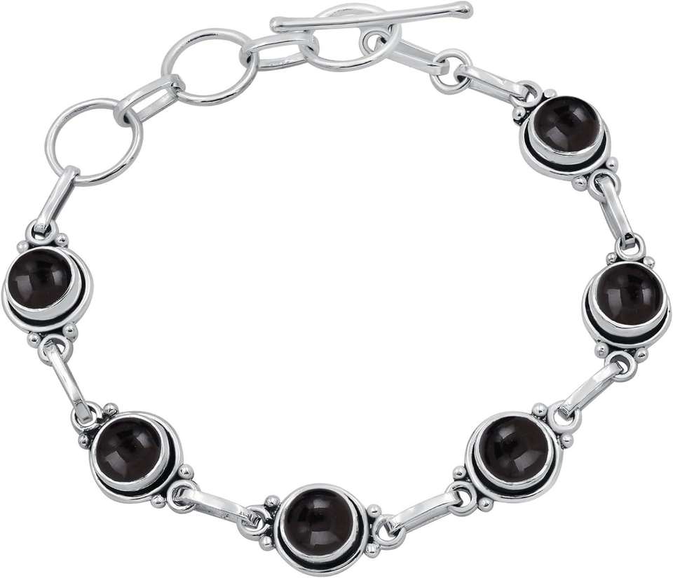 Gorgeous Solid 925 Sterling Silver Black Onyx Round Shape Gemstone Handmade Fine Silver Bracelet Jewelry Sterling Silver Jewelry