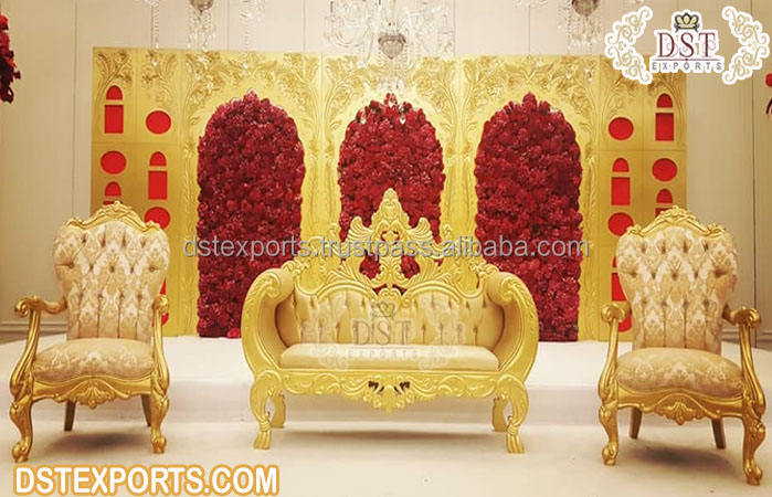 Nom du produit:Magnifique ensemble de canapés trône de mariage en or blanc