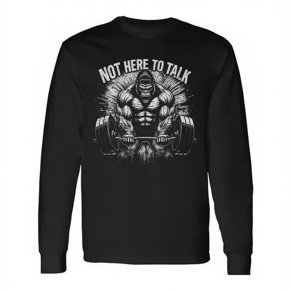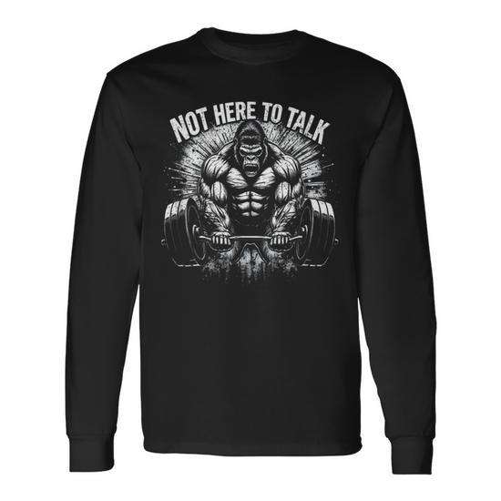 T-shirt unisexe à manches longues et col rond imprimé sérigraphié « Gorilla Gym Not Here Talk », vêtement de sport pour les passionnés de gym
