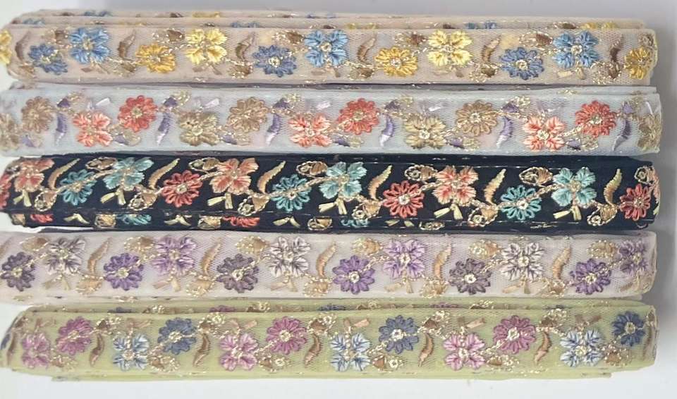 Gota Lace Clothing Accessories Organza Flowers with Colorful Lace Embroidery and Sequins for Cloth Art Decoration
