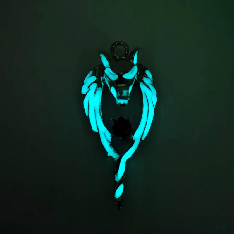 Gothic Glowing Necklace Chain Glow Retro Wolf Totem Pendant Necklace Glowing Charm Necklace Alloy Chain