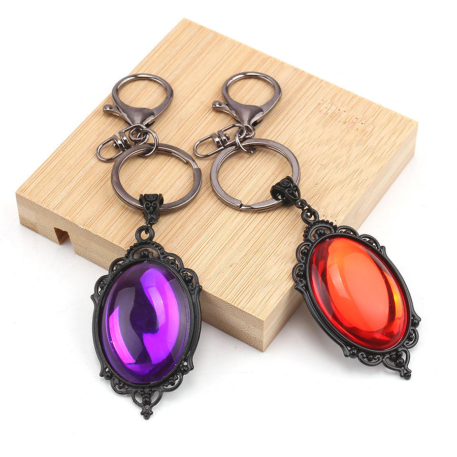 Gothic Retro Crystal Pendant Keychain Purple Red Glass Bezel Setting Unisex Everyday Wear