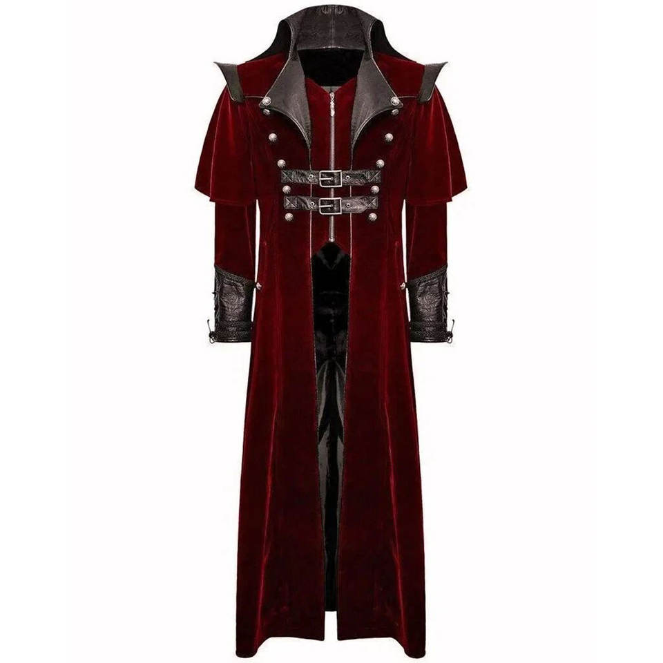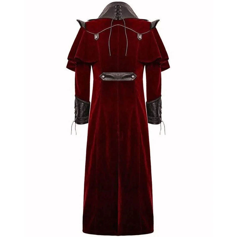 Manteau Rouge Gothique Steampunk pour Homme en Velours de Haute Qualité avec Accents en Similicuir Vente en Gros Usine 2026
