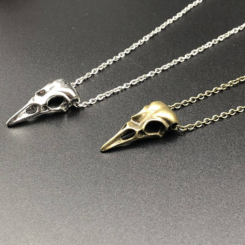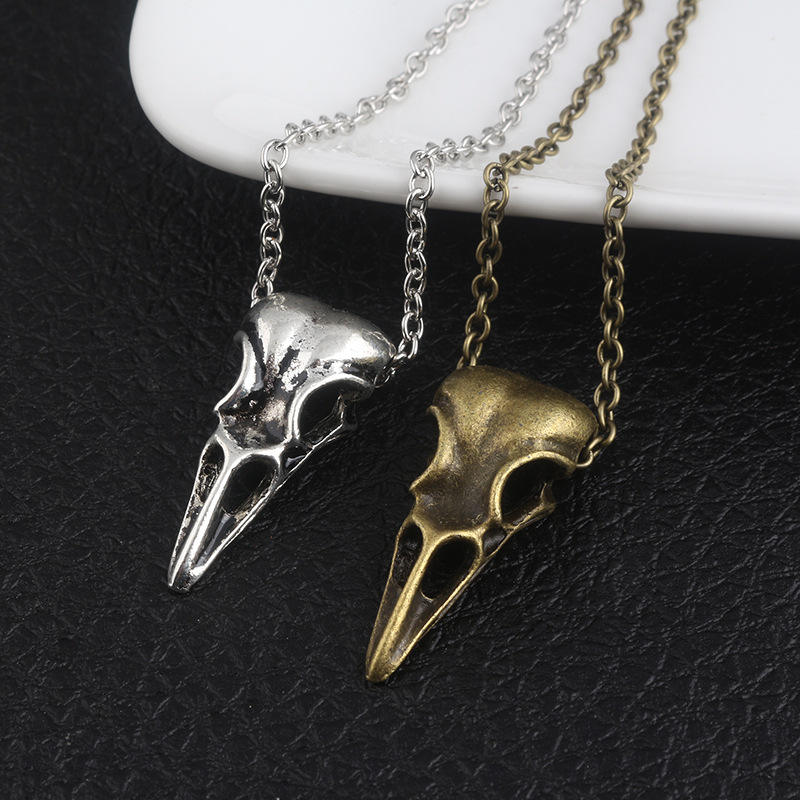 Collier pendentif crâne de corbeau gothique N0808J, chaîne à maillons, alliage de zinc plaqué argent/bronze, vente en gros