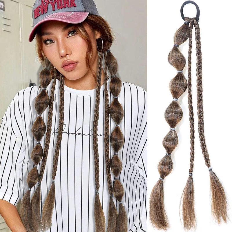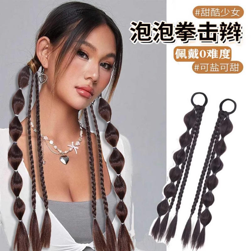 Perruques tressées pour femmes Gourd Boxing Braid, queues de cheval, brun naturel, extensions de cheveux en fibre haute température pour style festival de musique