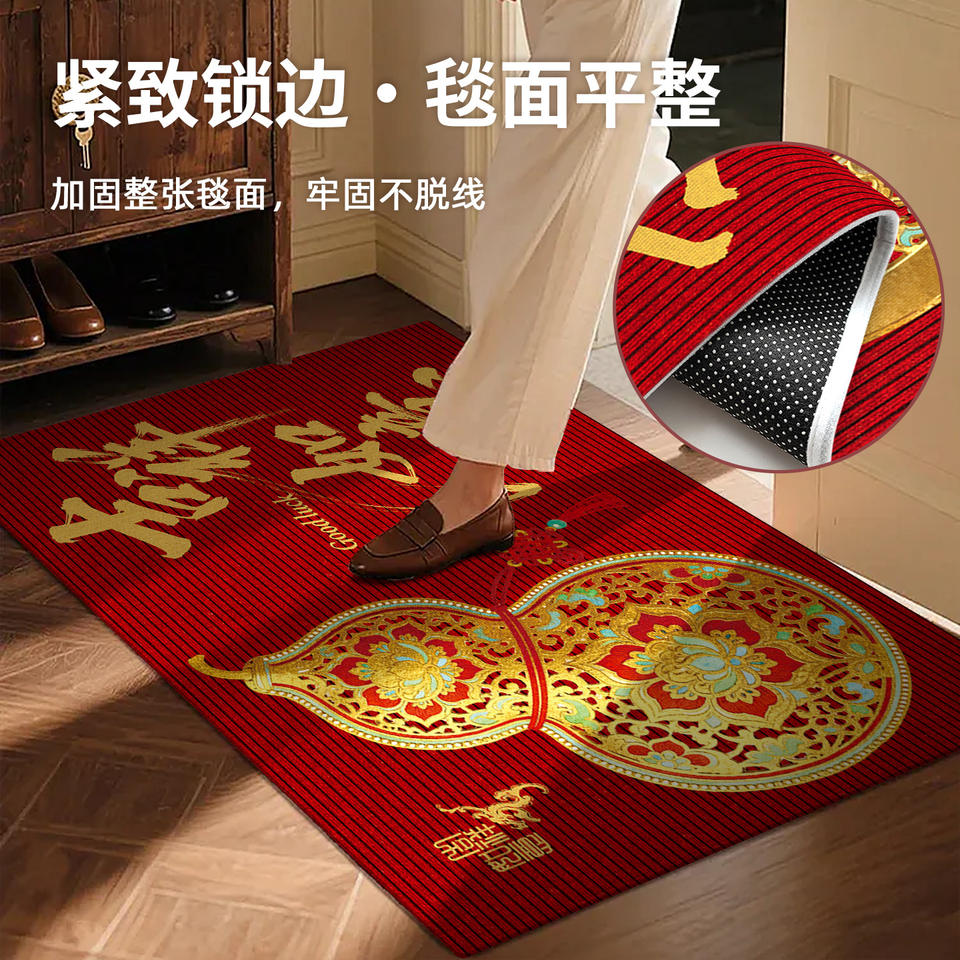 Paillasson en forme de gourde, rouge, en polyester, antidérapant, design porte-bonheur pour la décoration de la maison