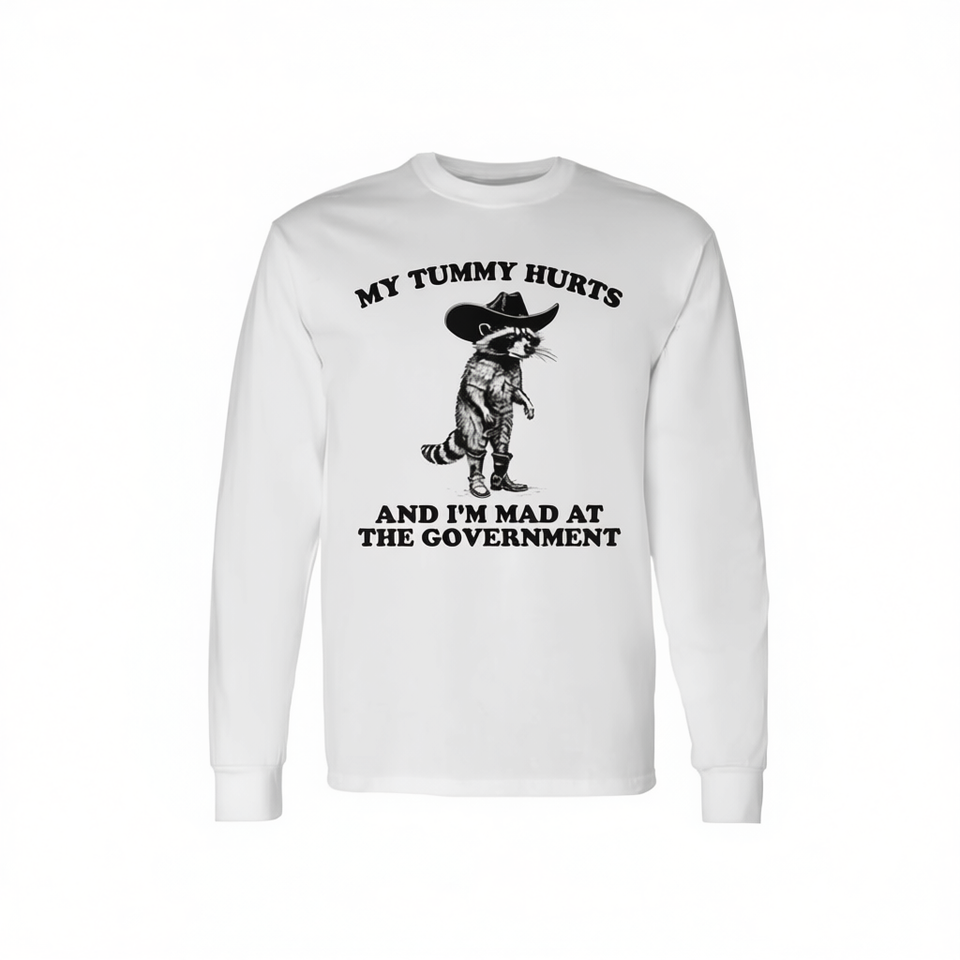 T-shirt à manches longues Government Cowboy Raccoon pour exprimer votre colère et votre malaise abdominal, un t-shirt promotionnel élégant