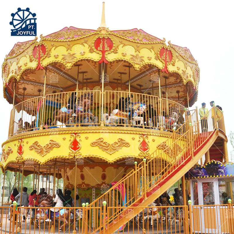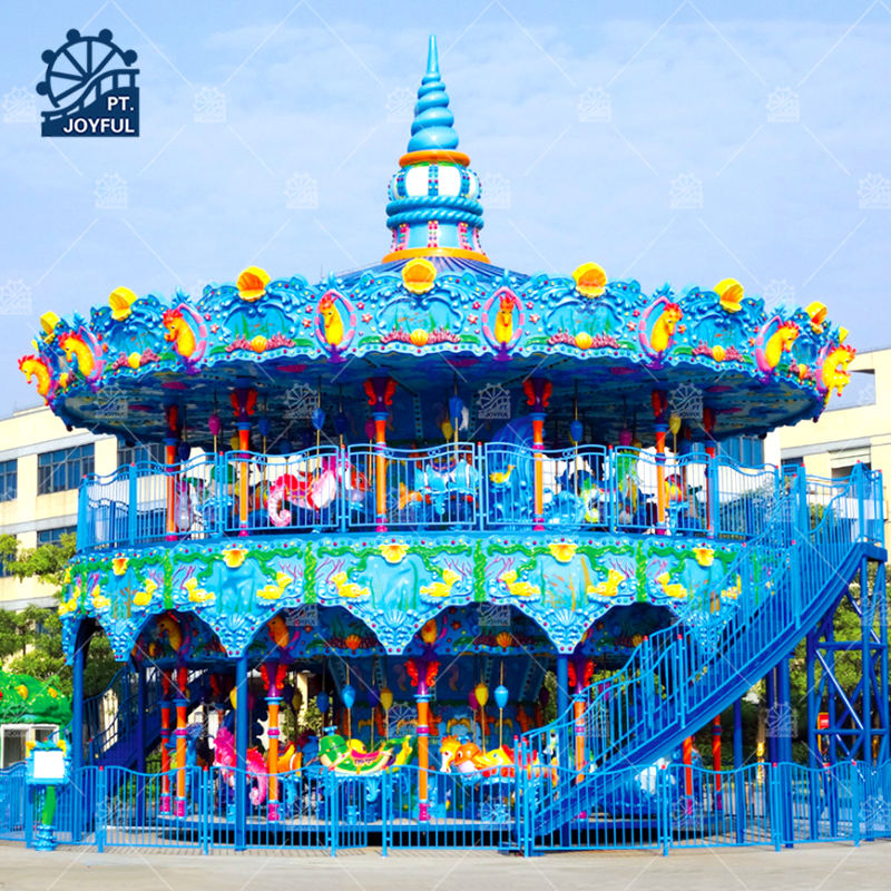 Projet d'appel d'offres du gouvernement Parc d'attractions sur le thème de l'océan Tour de 68 places Carrousel de luxe à double couche Cheval Extérieur Intérieur Métal