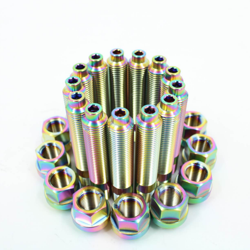 Conversion de goujons et écrous de roue en titane Gr5 M12x1.5 à 12x1.5 75mm pour voiture de course