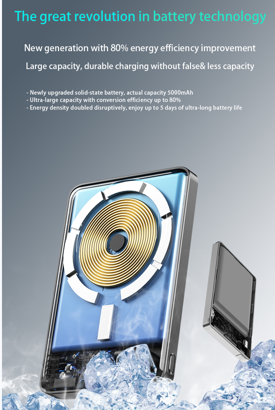 Batterie externe magnétique à chargement sans fil Grace 2025 avec logo personnalisé, 10000 mAh, conception innovante en alliage d'aluminium, 18W, pour location IA