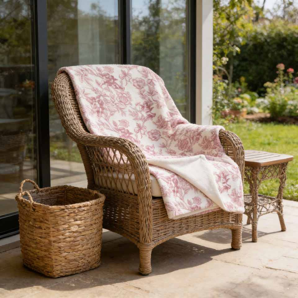 Couverture élégante et adorable à motif de fleurs roses en mohair 300 g/m² avec peluche 180 g/m² pour la maison