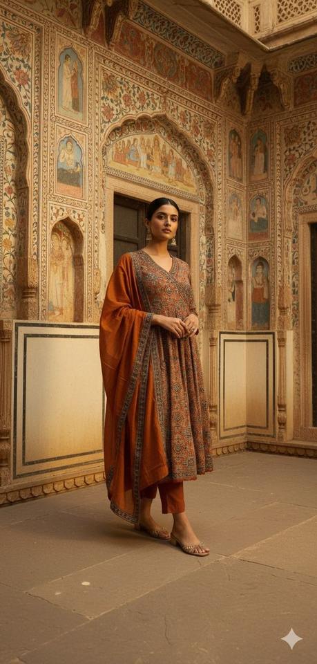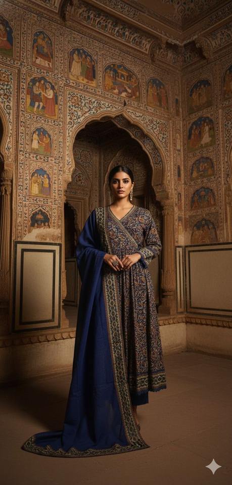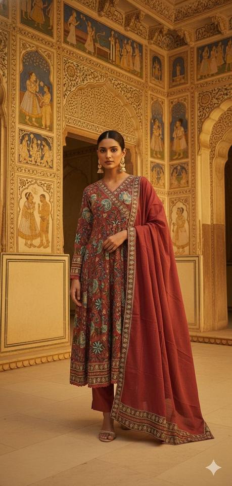 Top/Bottom/Dupatta:Cotton Anarkali With Kota Doriya Dupatta