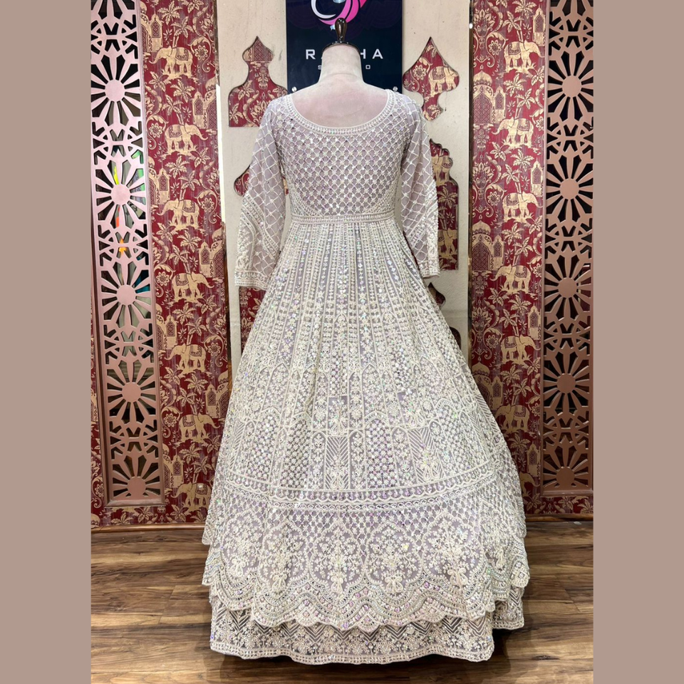 Graceful Mauve Indo Western Lehenga with Dori Work & Diamond Highlights For a Regal & Graceful Look at Weddings & Special Events